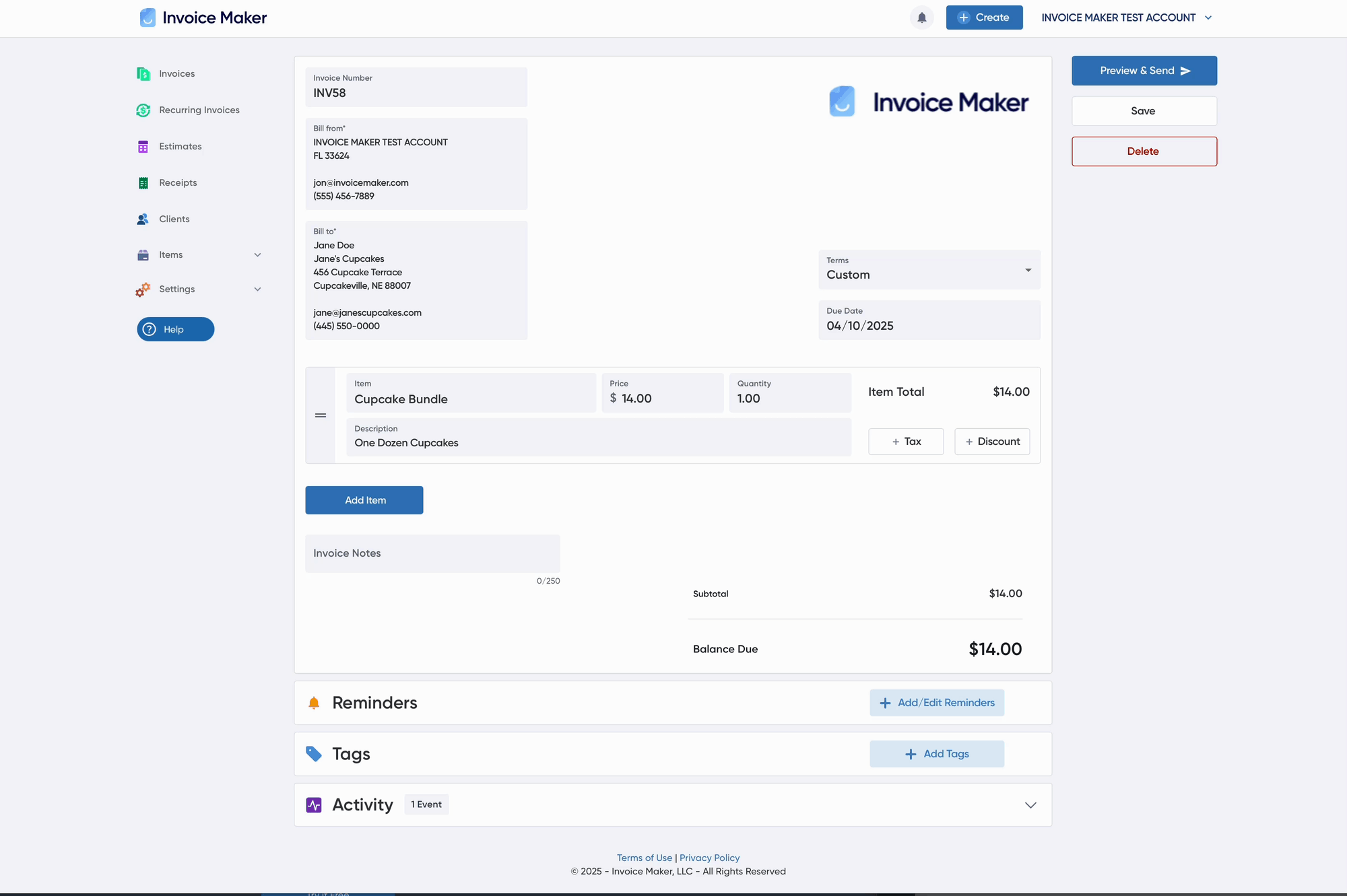 From your Invoice Maker account dashboard, you can “Create a Link” for each invoice you create, and you can send it directly to a customer for them to open at their leisure.